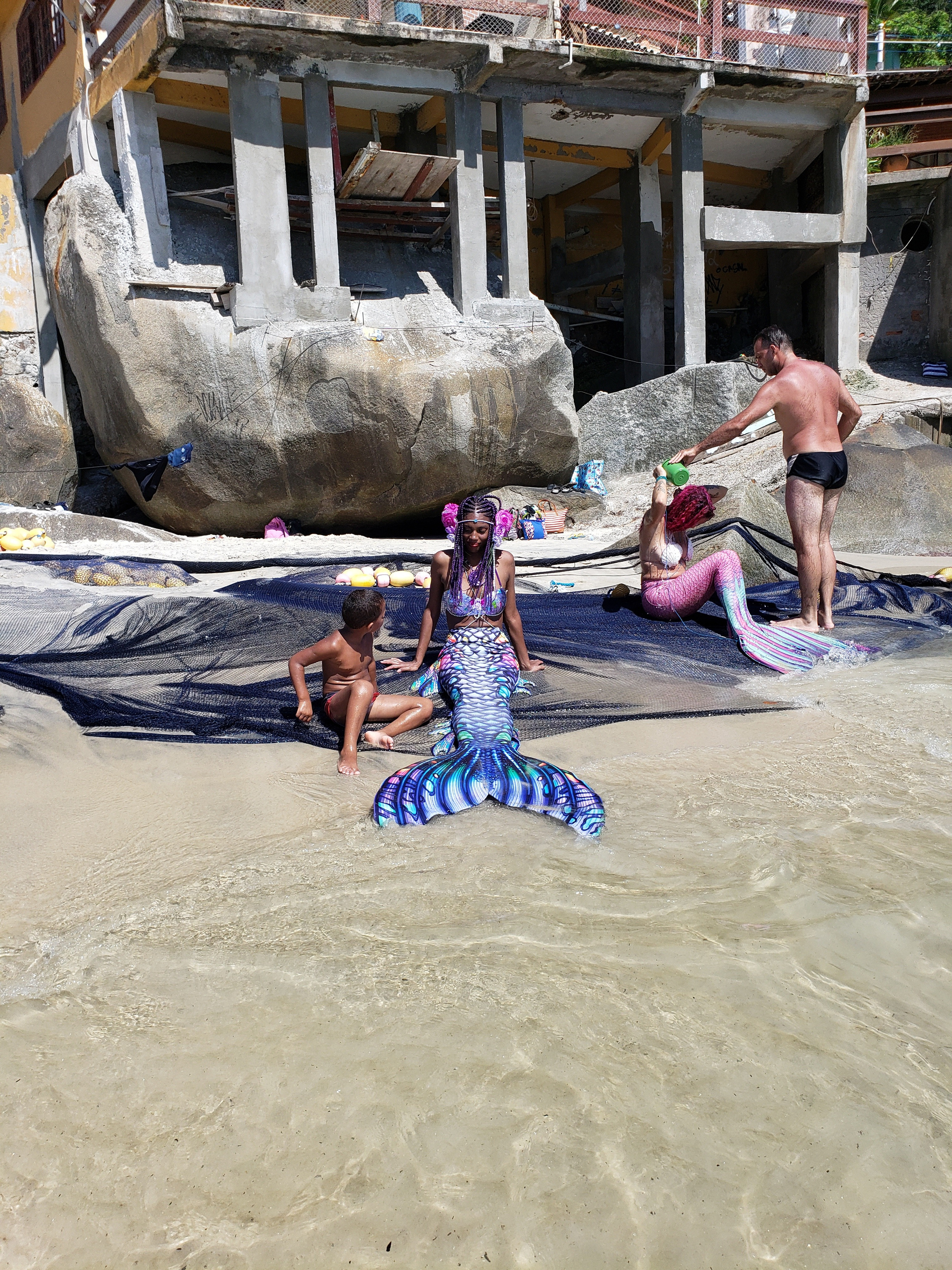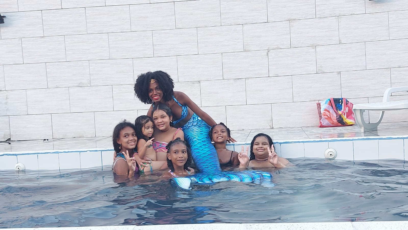 Há 6 anos levo a magia para as crianças na praia ou piscina, quando estou com a cauda de sereia.